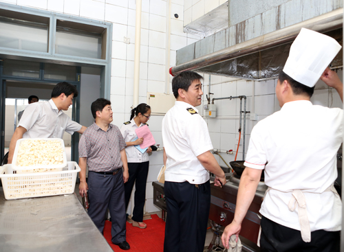 在校长刘广耀同志、党委书记杨长江研究员、校长助理司赞同志、食堂工作管理处负责人李凤东的陪同下,检查组听取了餐厅工作情况的汇报,并对我校餐厅进行了实地考察。主要检查了餐厅设施的配备,食品原材料、半成品、添加剂的质量,及安全隐患的防范等。