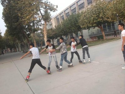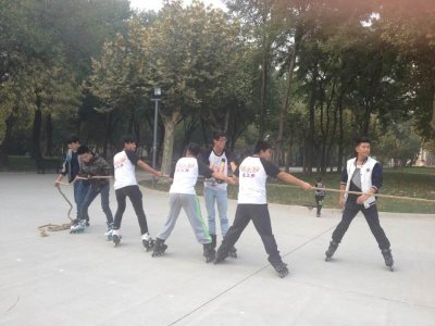2014年10月17日,山东圣翰财贸职业学院轮滑社的成员们,在教学楼前面举行了一场别开生面的拔河比赛。