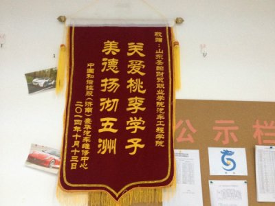 济南和谐豪华汽车维修中心赠予我校汽车工程学院锦旗