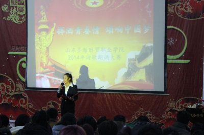 2014年12月17日下午16:00,山东圣翰财贸职业学院2014年诗歌朗诵大赛决赛在D5多媒体报告厅举办,赵雷校长出席了本次活动。本次大赛由校团委发起,经过两周的角逐,19位同学脱颖而出站在了决赛的舞台上。各二级团委书记和教师代表作为本次活动的评委。许云晓、闫琨担任了本次主持。