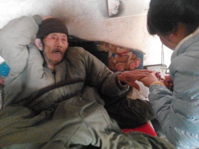 在潘村村委费主任的支持下,志愿者们来到了“五保户”的家中。田雨老师一行五人来到王兆全老人的家中。老人以前是革命时期的老八路,为革命奋斗一辈子,一生未娶无儿无女。老人一直生活的很乐观,天气暖和时还会练字,毛笔字钢笔字都写的好得很,但去年冬天时因为不小心摔了一跤,至今只能躺在病床上。志愿者们看到老人忙走上去打招呼、聊天,给老人洗衣,修剪指甲,喂老人吃香蕉等做一些力所能及的事情,感受到浓浓情意的老人十分高兴,并说希望志愿者们下次来,他能够站起来写字送给大家。志愿服务活动约持续了一个小时,志愿者向村委费主任表达了希望能结成对子的愿望,定期来为“五保户”服务,将雷锋精神永远留在这里。