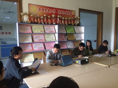 2015年3月30日中午,信息工程学院全体专任教师在学院会议室举行了以“如何通过技能大赛促进实践教学体系的改革与完善并推进创新能力的培养”为主题的2014-2015学年第二学期第一次学术交流研讨会。教务处副处长汪涓海、信息工程学院教学副院长李桂成及教学秘书孙新老师参加本次学术交流会议。会上大家各抒己见,畅所欲言,从多个角度对议题展开讨论,也提出了一些切实可行的方案、方法。