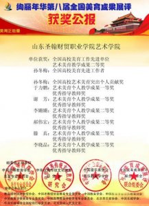 由中国高等教育学会美育专业委员会、中华优秀传统文化教育研究会、十二五教育部规划课题美育专项课题组和中国美育网联合举办的“绚丽年华”第七届全国美育成果展评结果揭晓。艺术学院在比赛中表现突出,荣获“全国高校美育工作先进单位”称号,并获“艺术美育教学成果二等奖”。艺术学院孙冬梅院长荣获全国高校美育工作个人突出贡献奖,并获得“全国高校美育工作先进工作者”荣誉称号;谢芳老师、于力鹏老师“获优秀组织教师奖”和“艺术美育个人教学成果一等奖”;李姗姗老师、郝伟宏老师、滕真老师、李晓晶老师获得“优秀指导教师奖”和“艺术美育个人教学成果二等奖”。