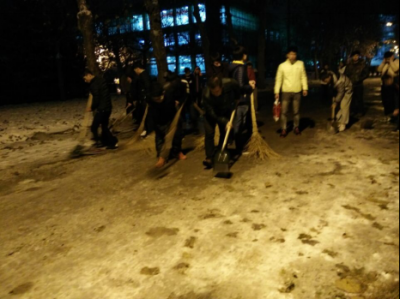 在我校各部门负责人的带领下,全校师生们在大雪冰封的冬日夜里埋头苦干,扫除了校园多个主干道的积雪,并用铁锨铲清了校园大门口以及多个主干道的结冰。他们利用夜间的休息时间表达自己对母校的感恩之情。他们怀着感恩的心,在寒冰刺骨的冬日里以自己火热的工作热情回报校园,以自己的实际行动向母校报达自己的感恩之情。