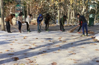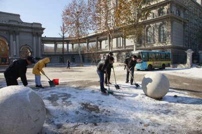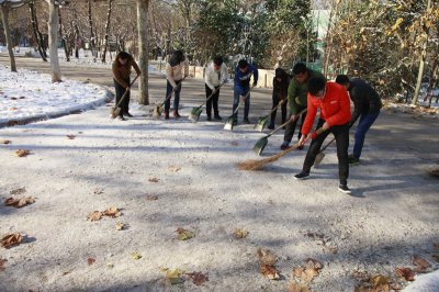 面对如此恶劣的天气,全校师生们,冒着大雪,不畏严寒,以极大的热情投入到寒冰刺骨的冬日里的扫雪除冰活动中来,他们埋头苦干,扫除了校园多个主干道的积雪,并用铁锨铲清了校园大门口以及多个主干道的结冰。他们利用自己的休息时间表达自己对母校的感恩之情。他们怀着感恩的心,在寒冰刺骨的冬日里以自己火热的工作热情回报校园,以自己的实际行动向母校报达自己的感恩之情。