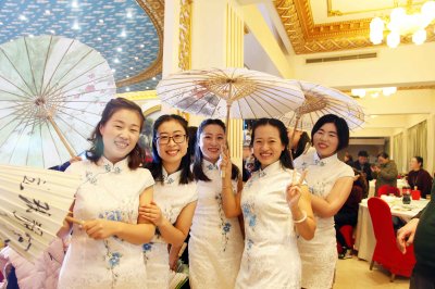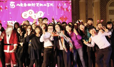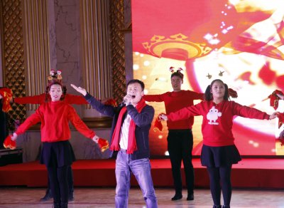表彰环节之后,全体教职工为大家带来了一场别开生面的文艺演出。建筑工程学院教职工带来的舞蹈《咱们屯里的人》,亲切、阳光、而又热烈,让全场领导、老师迅速融入了晚会积极向上的氛围之中。随后,俏皮、可爱的舞蹈《回娘家》,振奋人心的歌舞表演《相亲相爱》,动感、活泼的舞蹈《青春修炼手册》,《大王叫我来巡山》、《不如跳舞》,优雅、婉转歌舞表演《女儿情》以及交谊舞环节,时尚、富有感染力的迪斯科,则一次次地将整场晚会推上了高潮,充分展现了我校教师能文能武、多才多艺、积极向上的良好精神风貌。晚会期间,校领导还多次亲自参与到节目互动中,让大家倍感亲切。晚会最后,吉木校长扮演的“圣诞老人”一出场,更是又一次引爆全场,全体教职工争相领取小礼物,并与“圣诞老人”合影。