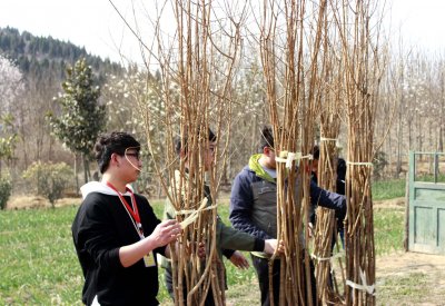 到达目的地之后,一位和蔼可亲的大爷向同学们做了植树示范,大家认真学习后,两人一组开始了植树活动。