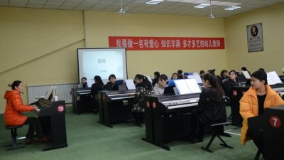 12月20日下午,山东圣翰财贸职业学院举行了《钢琴弹唱》技能示范课活动。本次技能示范课以“断奏的巩固以及连奏的学习”为主题,由艺术学院王效轲老师主讲,学前教育专业辅导员葛灿然担任助教。此次活动是学校响应国家号召,在全校范围推进教学改革、开展专业技能大练兵的重要举措。