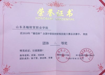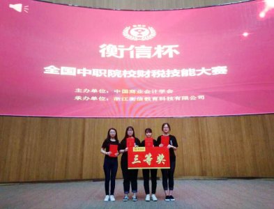 2018年6月13日,第五届“税友衡信杯”全国税务技能大赛(中职组)全国总决赛在杭州举行,山东圣翰财贸职业学院五年制高职学院代表队以山东省赛一等奖的成绩参加本项赛事。参赛选手在房琭、刘琳琳两位教师的精心指导下,不畏强手,努力拼搏,获得团体三等奖的佳绩。