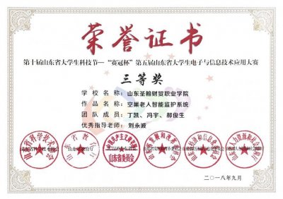 近日,山东圣翰财贸职业学院信息工程学院学子在2018年第十届山东省大学生科技节——“赛冠杯”第五届山东省大学生电子与信息技术应用大赛中喜报频、传收获颇丰。