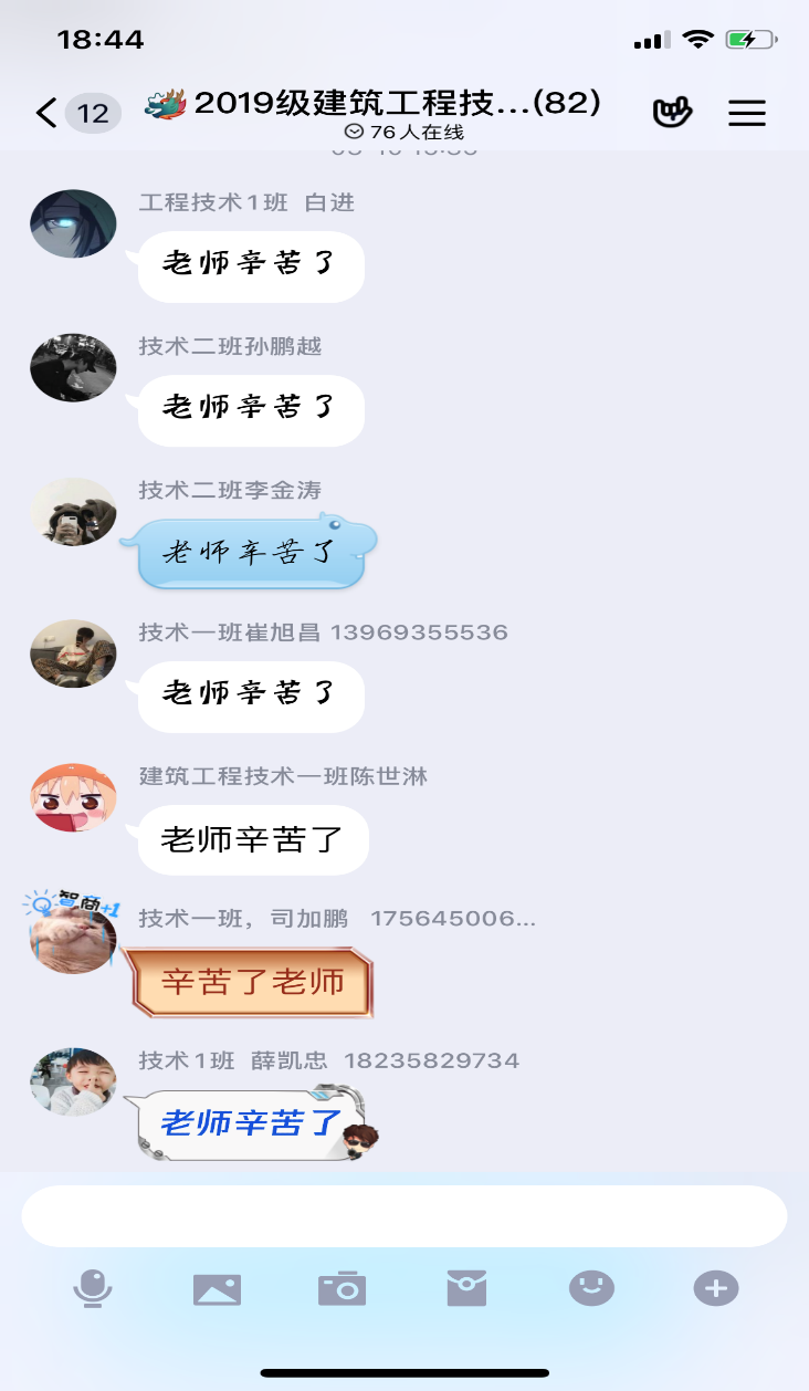 老师在线上教学之初都有些茫然,QQ班级群如何签到,如何布置作业,如何修改作业并打分,大家都群里进行分享,相互帮助,容易出错或难于掌握的技术还采用一对一的语音指导。线上教学的保证,需要高质量的互动。综合运用启发式提问、案例分析和讨论等教学手段与学生进行互动,注重学生的特点,适当引用网络流行语。给予学生及时的肯定及表扬,在线上营造良好的学习氛围。老师们均反馈学生学习状态良好,线上互动抢答,课后交流非常积极。一句句“老师辛苦了!”的话语让小小屏幕成了贴近师生关系的大纽带。