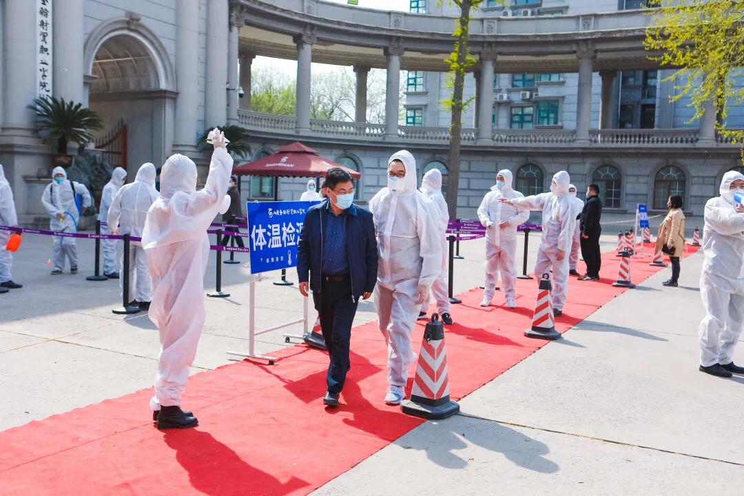 3月30日下午1点30分,模拟演练正式开始,各小组严格按照《山东省高等学校突发新冠肺炎疫情处置方法》设置的演练方案和操作流程开展。模拟演练先后在学校门口、教学楼、教室、学生公寓等重点区域开展,内容分为“学生返校时出现体温异常”、“学生在教室内自感体温异常”、“学生在宿舍内自感体温异常”3个场景。
