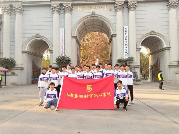 山东圣翰财贸职业学院男子足球队在赛前组织集中训练,选拔优秀队员代表学校参赛,公共基础部大学体育教研室于千老师带队出征,全体足球队员奋力拼搏、斗志昂扬。在小组赛的三场比赛中分别以2:1、6:0分别赢得山东职业学院、德州职业学院,第三场比赛不敌卫冕冠军山东工业职业学院,以小组第二名成绩晋级高职高专组八强。在与山东职业学院比赛中,信息工程学院2020级电子商务学生赵恒璞一记漂亮的射门绝杀对手将比赛推向高潮,最终这粒进球也锁定了本场比赛的胜利。