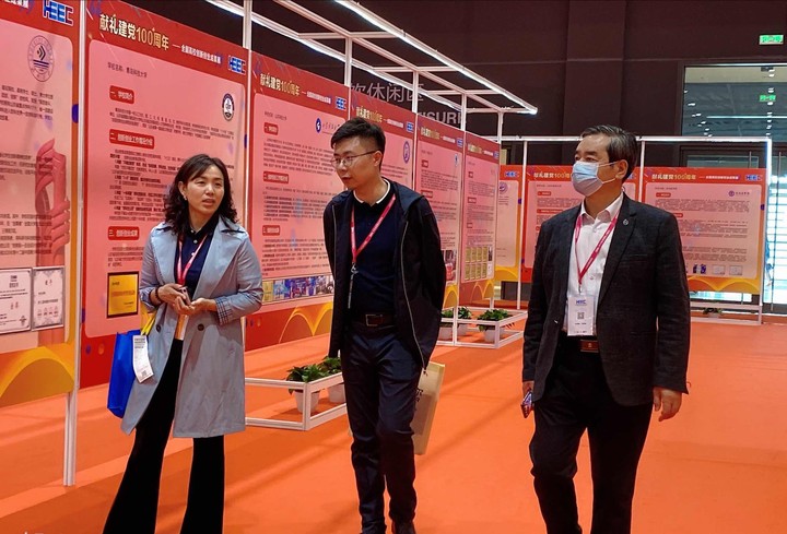2021年是中国共产党建党100周年。本届高博会的一大亮点,是精准对接山东新旧动能转换技术需求,特设了“献礼建党100周年特展”展区,举办了“新发展阶段创新创业教育改革论坛”,为全国创新创业教育同仁搭建了交流互动平台。成果展共展出创新创业成果和项目300余项,展出项目围绕着数字创意、生物医药、智慧农业等领域,全面展示了大学生创新创业成果。现场32个项目进行了路演展示,60位投资人通过“线上+线下”方式进行了洽谈。