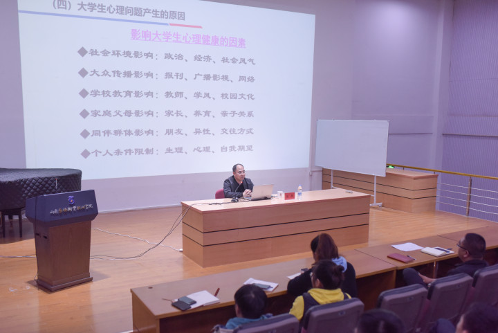 10月13日下午,学校举办学生心理健康教育工作培训会,邀请国家一级心理咨询师、山东师范大学副教授昌兵,以《大学生常见的心理问题及干预策略》为题,为我校辅导员进行培训。学校党委书记姚东方出席培训会并讲话,校工会主席许锐主持培训会,校党建工作联络员张晗、学生处相关负责老师、全体辅导员参加培训会。