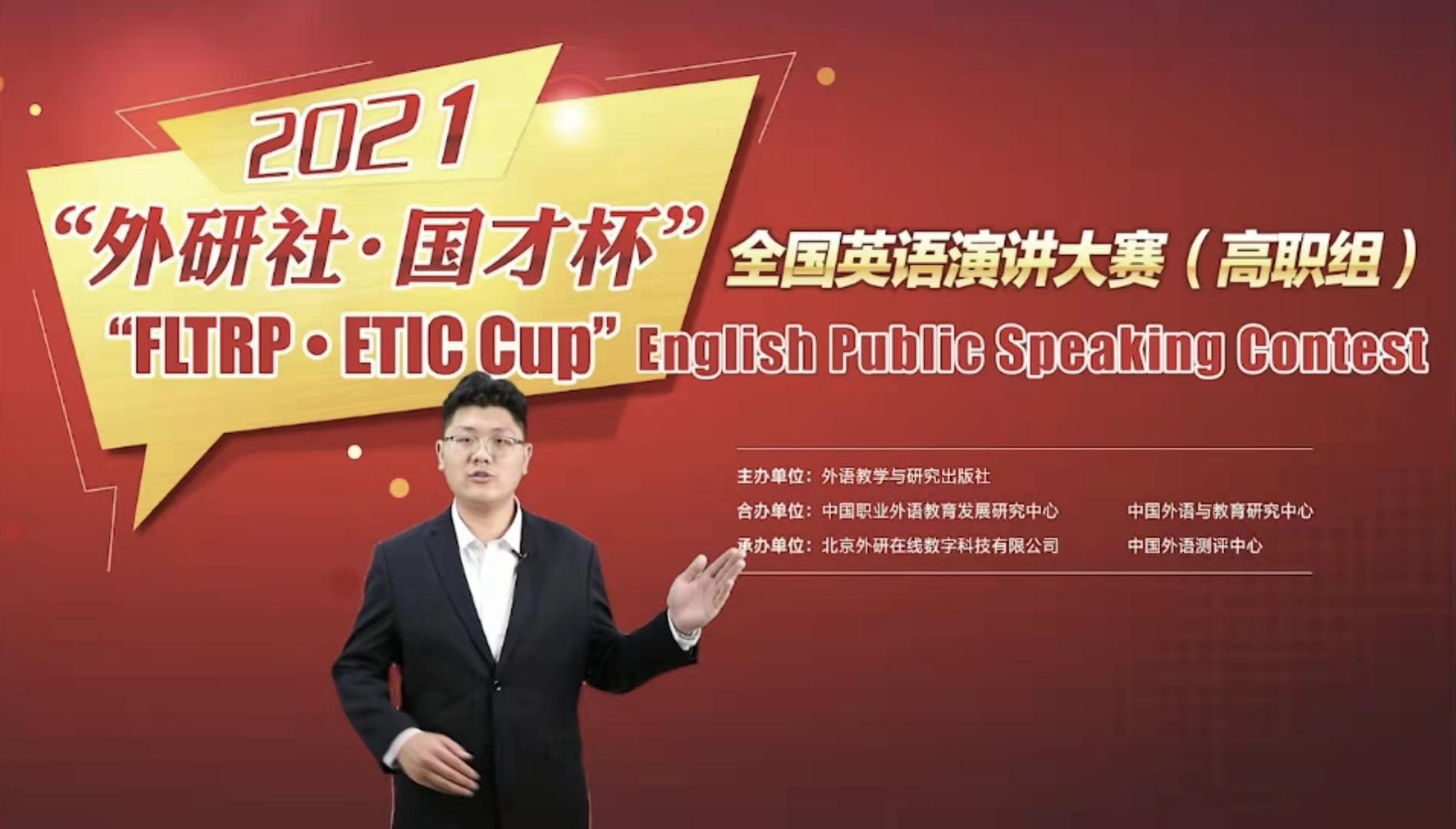 近期,我校健康学院学生张浩代表学校参加了2021“外研社·国才杯”全国英语演讲大赛山东省复赛,喜获三等奖,实现了圣翰在该项英语大赛上零的突破,展现了圣翰师生的风采。此次比赛共有全省87所高职院校81名学生参加。