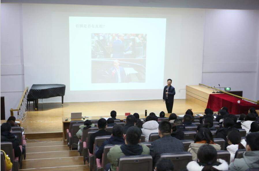 报告会上,宋全政教授以《高校学生管理干部的媒介素养 ——谈谈高校舆情引导》为题,从善知、善待、善用三个维度对媒体认知、舆情引导、舆情应对进行了解读。讲座过程中,宋教授引用了大量现实案列和客观数据,深入浅出地为全体教职员工上了一堂生动形象而富有说服力的舆情引导课。