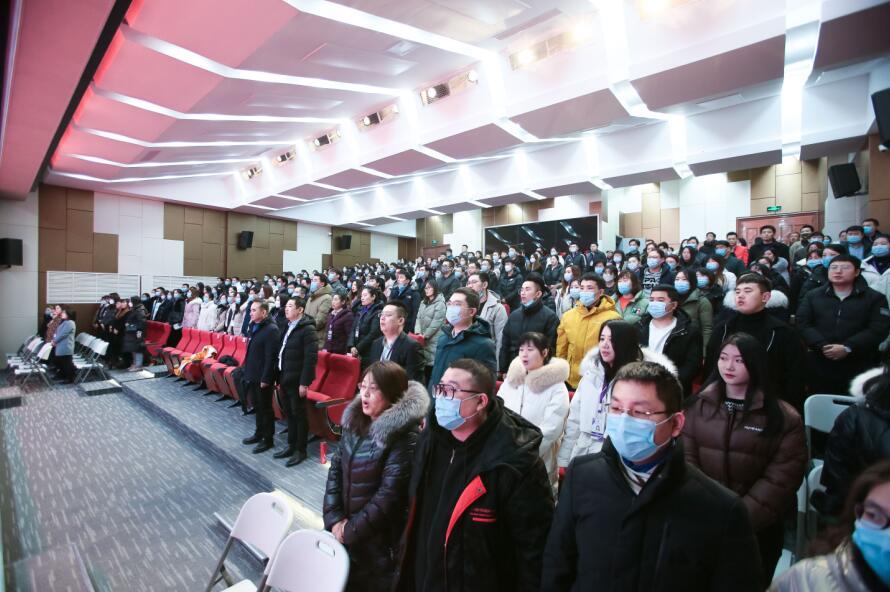 大会在雄壮的国歌声中拉开帷幕。刘广耀校长向全体教职员工做2021年度工作总结报告。他指出:“2021 年是中国共产党成立100 周年,也是“十四五”规划的开局之年。学校以习近平新时代中国特色社会主义思想为指引,全面贯彻落实党的教育方针,坚持党对教育工作的全面领导。全校上下紧紧围绕教学育人中心任务,牢固树立“一盘棋”思想,高点谋划、开拓创新,五大聚焦、贡献突出,积极争当全省职业教育先锋模范排头兵。2021年,圣翰在党建引领工作、内涵建设、教育教学管理、省市技能大赛多条战线上结出累累硕果,取得了令人瞩目的成绩。但我们仍要清醒的认识到,学校在建设发展过程中仍然存在专业布局不合理、课程改革不深化、治理工作不规范等问题。2022年,学校将突出党建引领,持续推进品质立校,加大重点专业和优势特色专业建设力度,构建“党委领导、校长负责、专家治学、民主管理”的运行机制,打响“改革突破、管理突破、质量突破、人才突破”攻坚战,加大软硬件建设投入力度,推进新办公楼、创新创业孵化基地、图书馆、健身房、现代化超市等一大批工程建设,全面推进学校各项事业高质量发展。