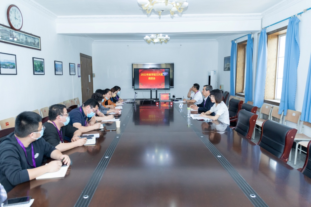 为扎实推进教学能力大赛工作,5月6日,山东圣翰财贸职业学院于行政楼二楼会议室组织召开2022年教学能力大赛调度会。会议由教务处处长汪娟海主持,副校长王开贞、教学能力大赛评委徐红出席会议并讲话。各二级学院(部)负责人、教学管理人员、教学能力大赛团队成员,教务处副处长王桐,教师发展中心申正参加会议。鉴于疫情防控要求,会议利用腾讯会议软件平台采取线上与线下相结合的方式进行。