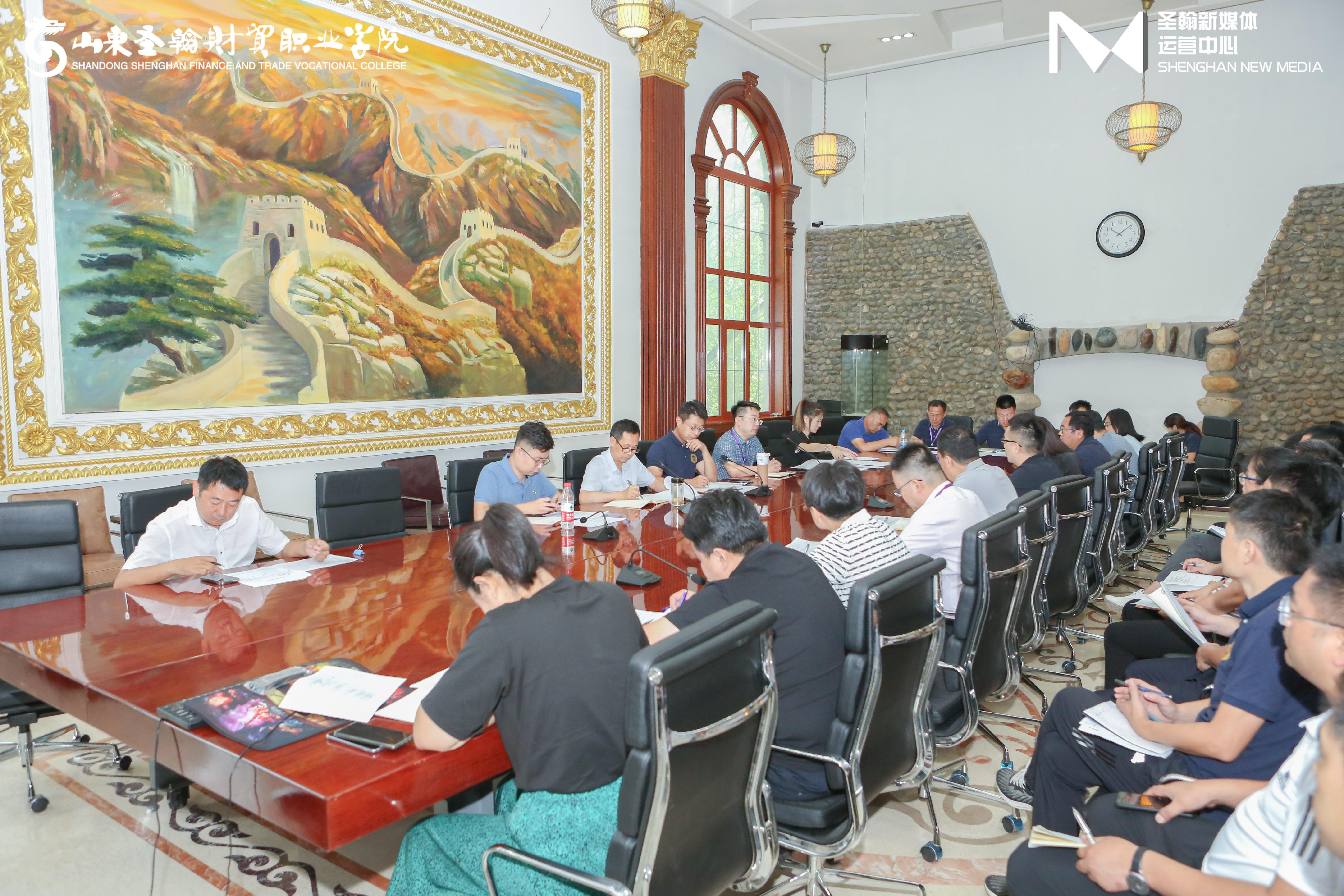 8月18日上午,山东圣翰财贸职业学院2022年迎新工作会议在府邸二楼会议室举行。党委书记姚东方、校长刘广耀、副校长姜峤出席会议。各二级学院(部门)负责人、迎新工作各环节骨干人员参加会议。会议由招生办公室主任王圣文主持。