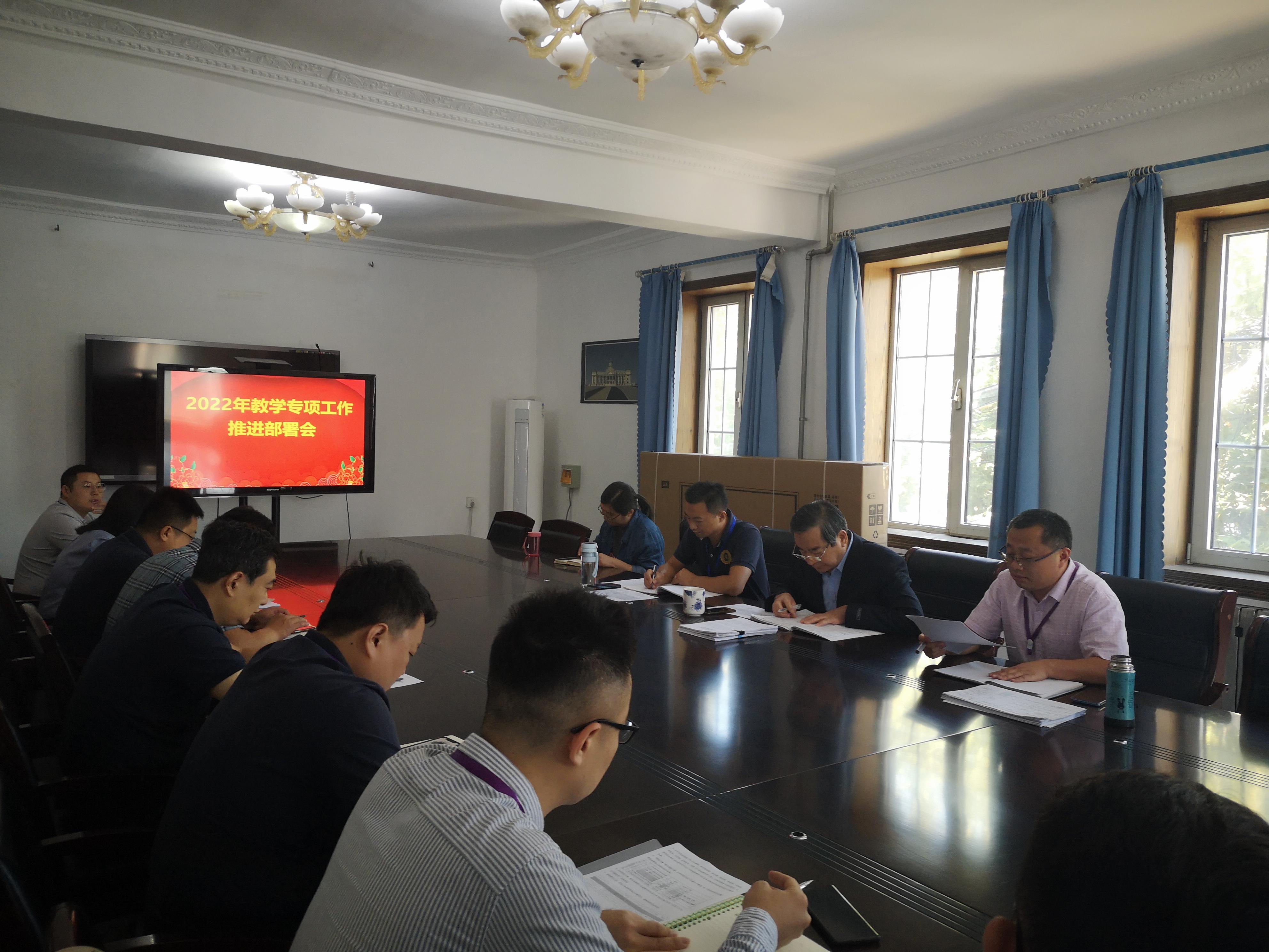 为积极推进2022-2023第一学期教学专项工作,9月23日,教务处组织召开专项工作推进部署会,王开贞副校长参加,张明哲副处长主持会议,杨立涛副处长以及各教学单位负责人参加会议。