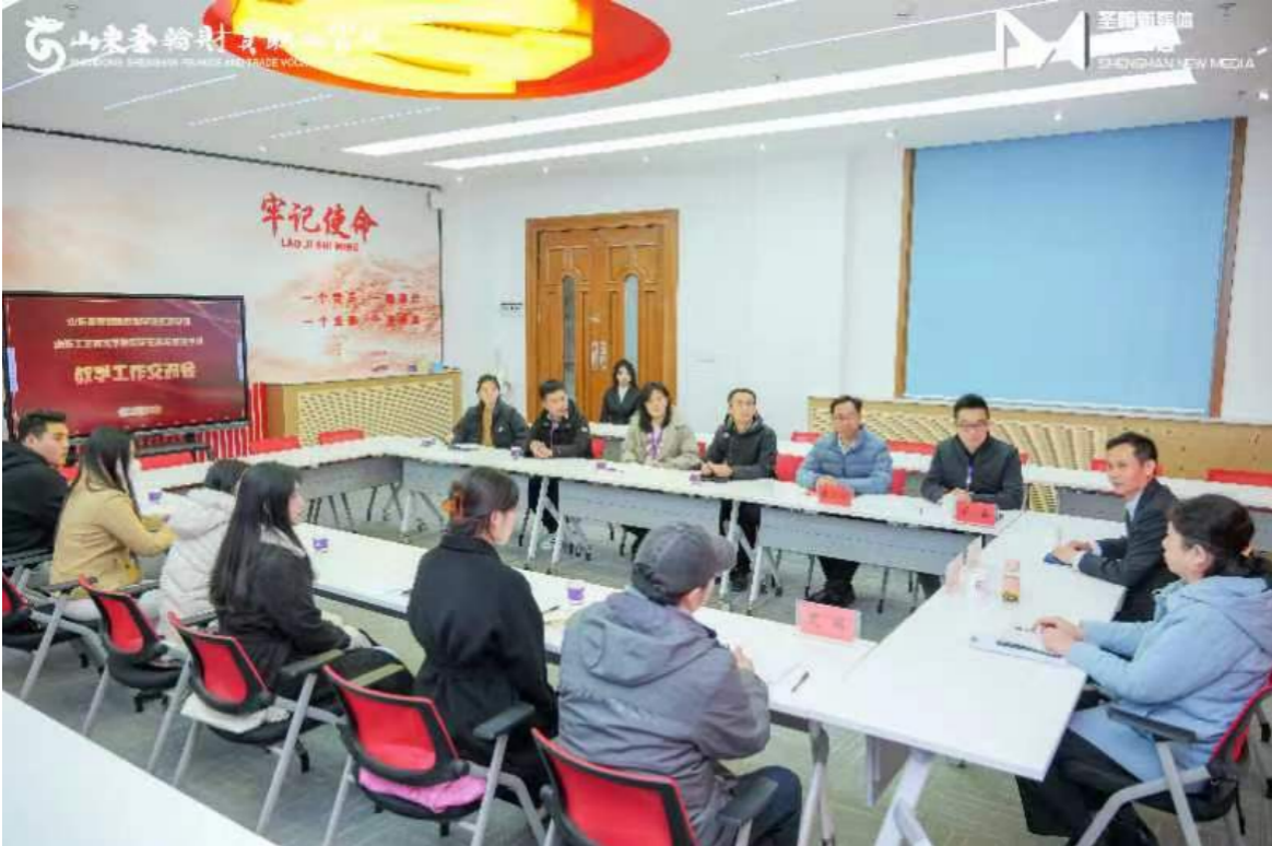 会上,姚东方书记对艾琳主任一行来访表示欢迎,对山东工艺美术学院数字艺术与传媒学院对我校教学工作的支持表示诚挚的感谢。姚东方介绍了我校办学基本情况和未来发展愿景,希望以艾琳主任一行来访为契机,进一步拓展和加深两院间的交流与合作。任伟清主席介绍了山东工艺美术学院的基本情况,并表示作为山东工艺美术学院派驻山东圣翰财贸职业学院的党建工作指导员,将按照省教育工委的要求,依托派出单位做好党建1+N帮扶工作。数字媒体教研室李晓晶主任介绍了我校数字媒体特别是动漫专业教育教学情况。艾琳主任介绍了山东工艺美术学院数字艺术与传媒学院动画教研室情况并就动画专业教学方式、教学模式的改革谈了自己的思路。