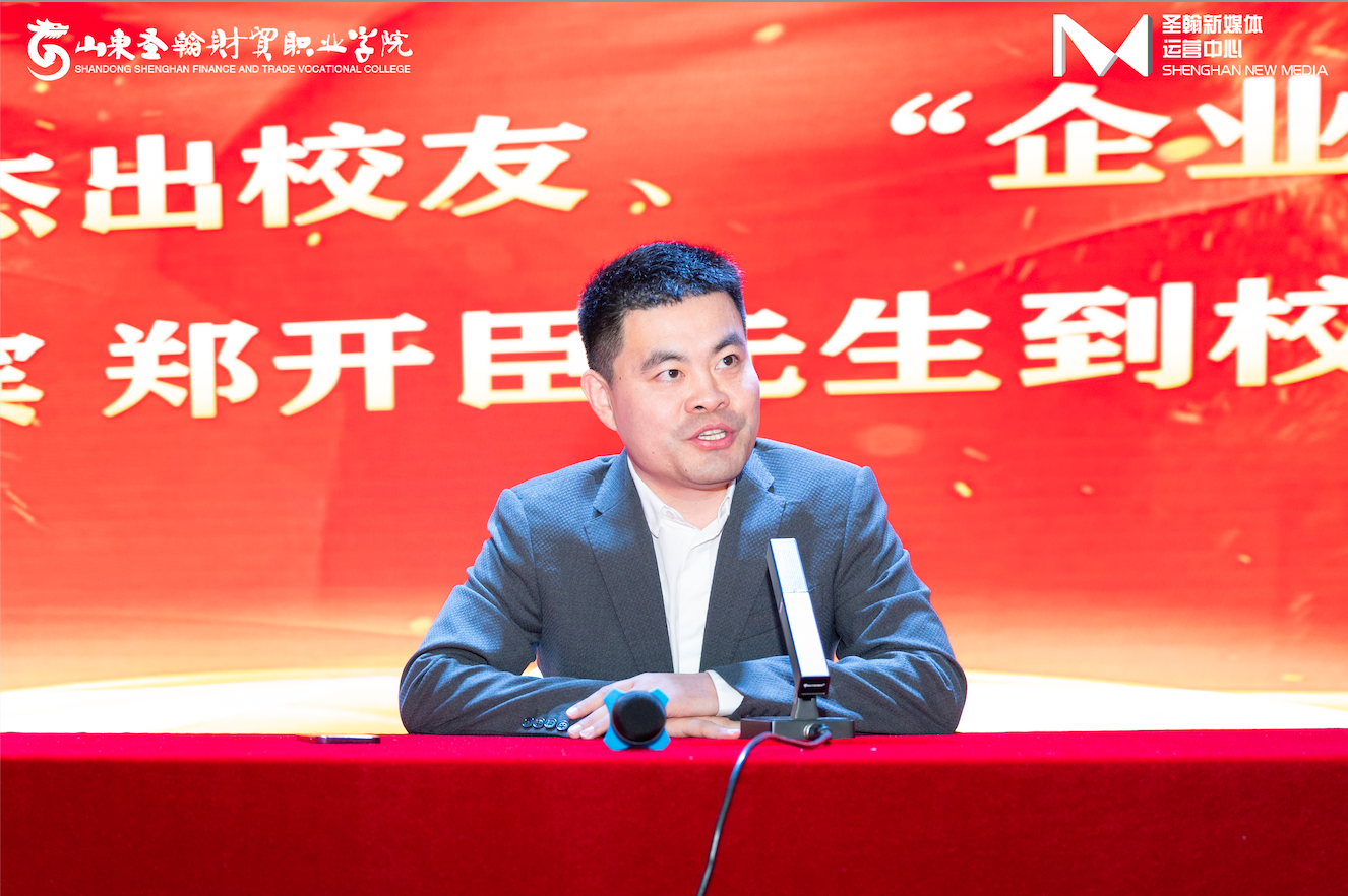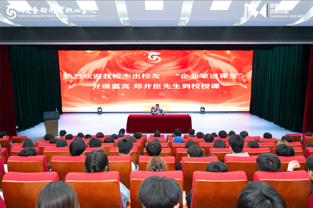 我校杰出校友、杭州智谷数字能源科技有限公司郑开臣董事长作为开课嘉宾进行专题讲座。郑开臣从“职业规划,赋能人生”、“我的青春岁月”、“实习与就业”等方面分享了其成长、求学和创业心得,号召同学们努力学习,饮水思源,回报国家、回报社会、回报母校。一个多小时的讲座,表达出了他对圣翰的感情、对母校的热爱和对学弟学妹的殷切希望。