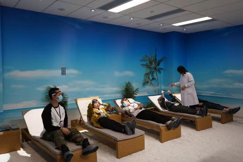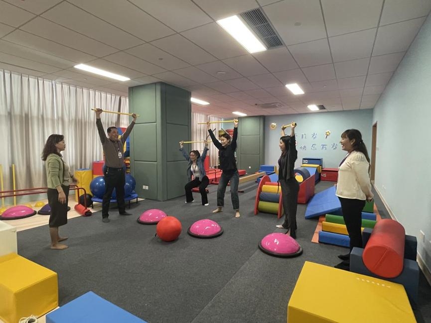 期间,参访人员参观了医院的开放智慧减压中心,进行了体能体测、光照、VR虚拟现实的体验,参加了生动有趣的心理团体辅导活动。