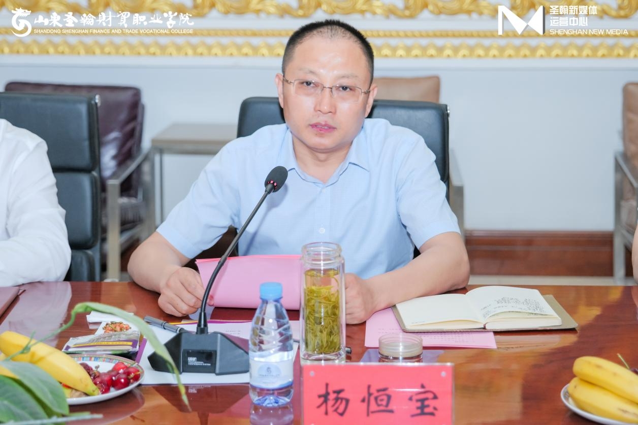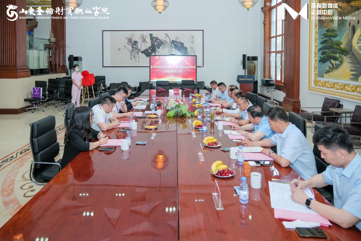 姜峤向与会人员详细介绍了山东圣翰财贸职业学院的基本办学情况,重点介绍了近年来学校的实习就业工作。