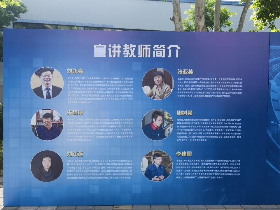 宣讲会上,宣讲团的六名优秀教师围绕“铸教师之魂·造良匠之师”的主题分享了在各自职教战线上取得的教学改革成果、产教融合经验,赢得了现场热烈掌声。陕西工业职业技术学院刘永亮教授以“点亮未来的大国工匠”为主题;北京工业职业技术学院张亚英教授以“社会的需要就是我们努力的方向”为主题;江西陶瓷工艺美术职业技术学院朱辉球教授以“陶冶我们共同的人生”为主题;成都航空职业技术学院周树强副教授以“让梦想在高高的天空飞翔”为主题;深圳职业技术学院刘红燕教授以“我们的人生在职业教育的实践中增值”为主题;天津职业大学李建国教授以“教学做一体化培育‘大国工匠’”为主题,讲述了他们在职教岗位上的教学改革成果、产教融合经验、帮助学生成长成才的感人事迹,用亲身经历表达了对职业教育事业的热爱,真挚的情感感染了现场每位观众。