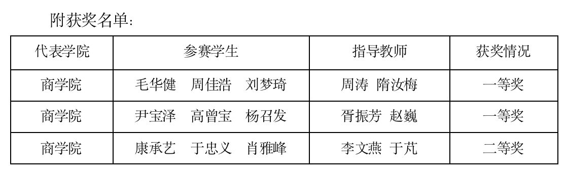 商学院派出周涛、胥振芳等6名教师,指导毛华健、尹宝泽、康承艺等9名同学参赛,参赛同学沉着比赛,冷静分析,队员分工明确,共同奋战,最终夺得两个一等奖和一个二等奖的历史最佳成绩。