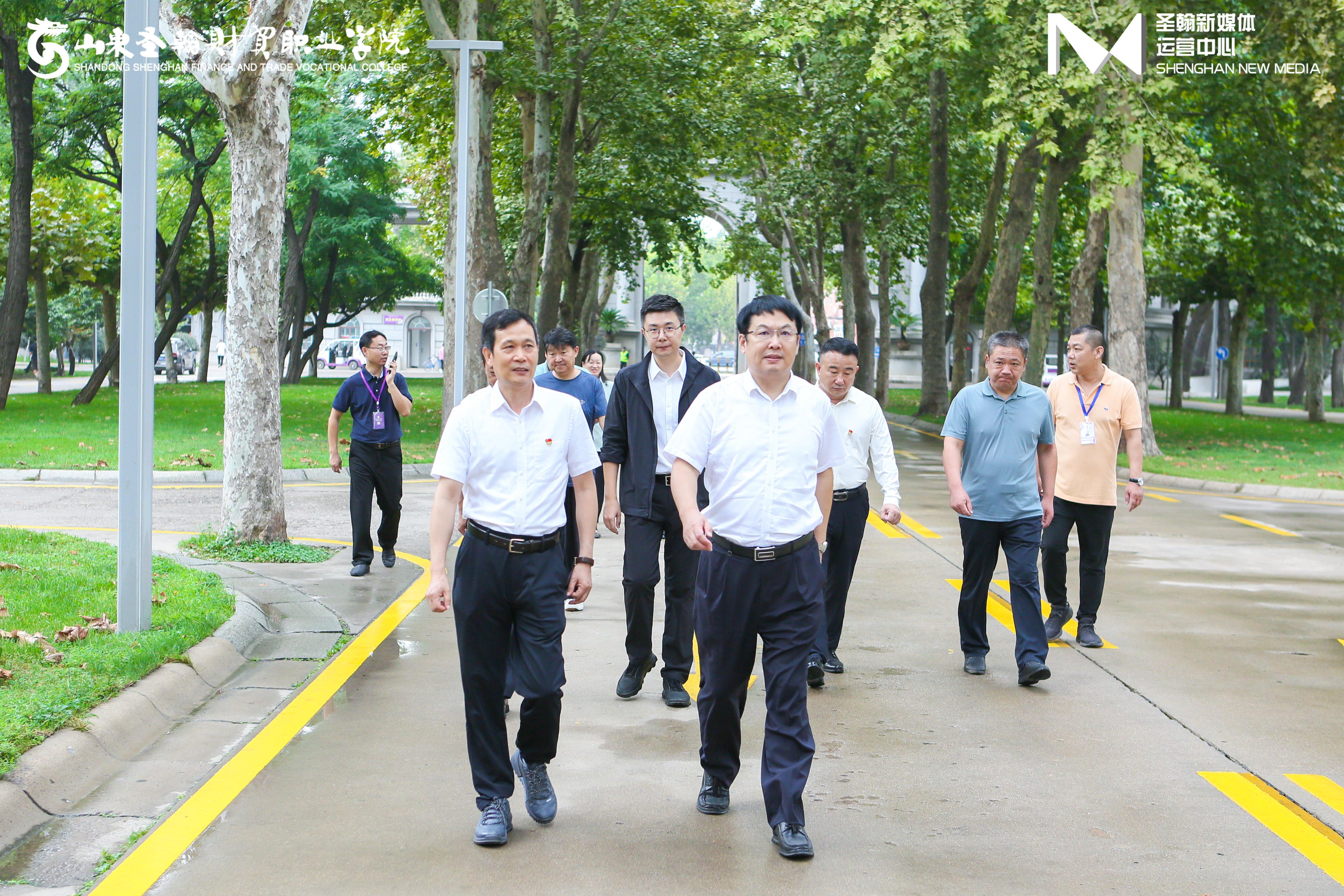 刘磊一行参观了学校“全国党建工作样板党支部”党建活动室和教育教学设施,对于学校工作给予高度评价,希望学校能够发挥自身优势积极融入长清区廉洁文化建设,为全面推进乡村振兴贡献力量。