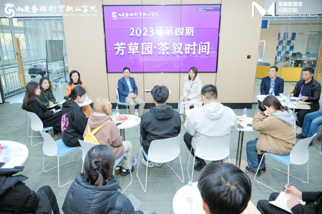 为进一步提升学校教学管理水平,更好地服务学生成长成才,11月16日下午,山东圣翰财贸职业学院2023年第四期“芳草园•茶叙时间”在创梦空间路演室举行。学校党委书记姚东方围绕学生学习效果、技能训练程度、教师授课方式方法、专业发展等话题与2023级学生亲切交流。山东省委教育工委派驻学校党建指导员韩丽达、教务处处长汪娟海、学生处处长任寿亭、各二级学院教学负责人、学生代表近30人参加活动。