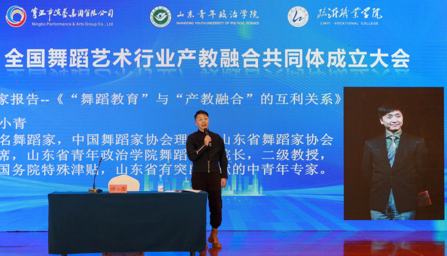 为深入贯彻落实党的二十大精神,落实中共中央办公厅、国务院办公厅《关于深化现代职业教育体系建设改革的意见》等决策部署,推动全国舞蹈艺术行业规范发展,打造舞蹈艺术职教品牌,由宁波市演艺集团有限公司、山东青年政治学院、临沂职业学院联合牵头组建的全国舞蹈艺术行业产教融合共同体成立大会于12月23日在临沂隆重举行。山东圣翰财贸职业学院应邀参加本次大会,并被推举为全国舞蹈艺术行业产教融合共同体常务副理事长单位,艺术学院院长亓睿推举为常务副理事长。