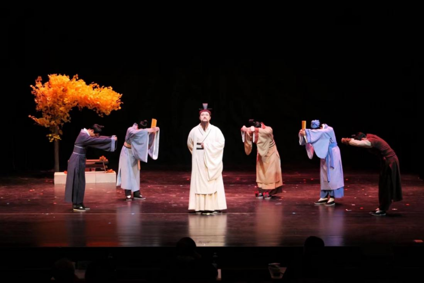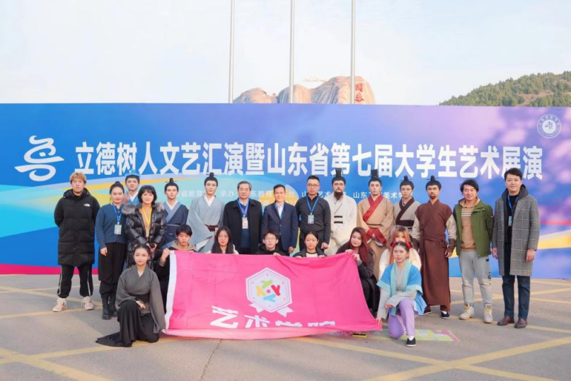 其中,艺术学院表演艺术专业卢潇忆老师主创的话剧《孔子收徒》经过层层筛选,入围了本次大赛的戏剧类专业组优秀作品节目展演。该作品以孔子和其弟子子贡拜师的故事为主线,充分展示出伟大的教育家思想家孔子的智慧与学识。本次展演经过新闻媒体的全平台转播、国家一级导演,中国国家话剧院导演吴晓江领衔的国家级专家阵容评审,《孔子收徒》在现场展演活动中突破重围,取得全省一等奖的佳绩,并获得代表山东省报送国家教育部参评的资格。