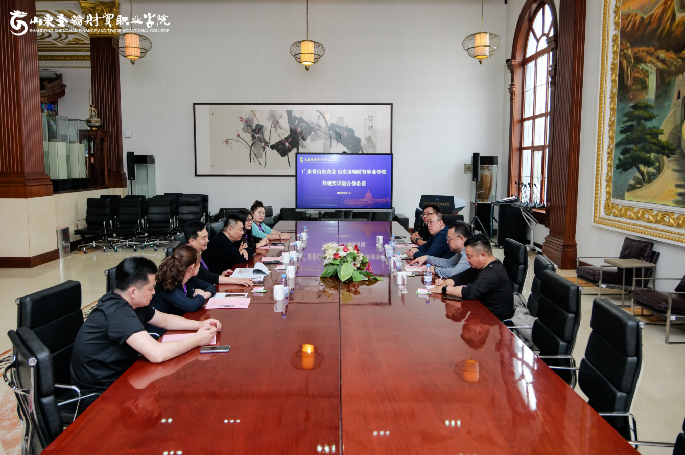 4月1日下午,广东省山东商会常务副会长、深圳乐天成控股集团副总裁赵延军,广东省山东商会副会长、深圳市领航通移动视讯有限公司总经理刘晓磊,深圳市华腾世创科技有限公司总经理赖士豪,广东省山东商会常务会长助理高会超一行赴山东圣翰财贸职业学院参加广东省山东商会与山东圣翰财贸职业学院校企合作洽谈会。山东长城实业集团总经理闫磊、人事部部长马圣春,健康学院院长刘锋等参加会议。