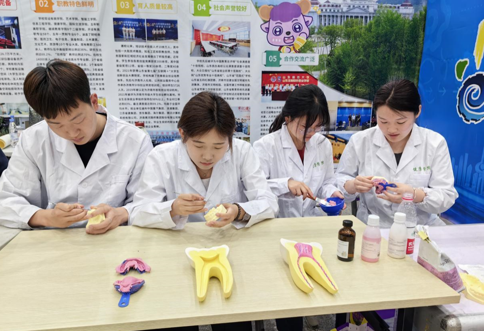 健康学院高度重视,成立工作领导小组,选拔适合职教周展示的项目,精心布置,认真打磨,最终遴选急救基本技能“心肺复苏术”和“海姆立克急救法”及口腔牙印模型的制作技能等项目参加展示。