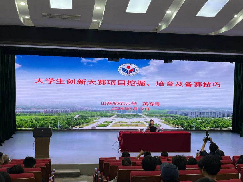 此次讲座邀请到了山东师范大学机关党委副书记、山东省大学生创新创业教育指导会委员黄春霞教授,副校长王开贞、大赛服务与管理办公室主任王桐、创新创业学院院长盛雅欣、各二级学院大赛负责人、创新创业学院孵化运营部与各师生代表共100余人参会。