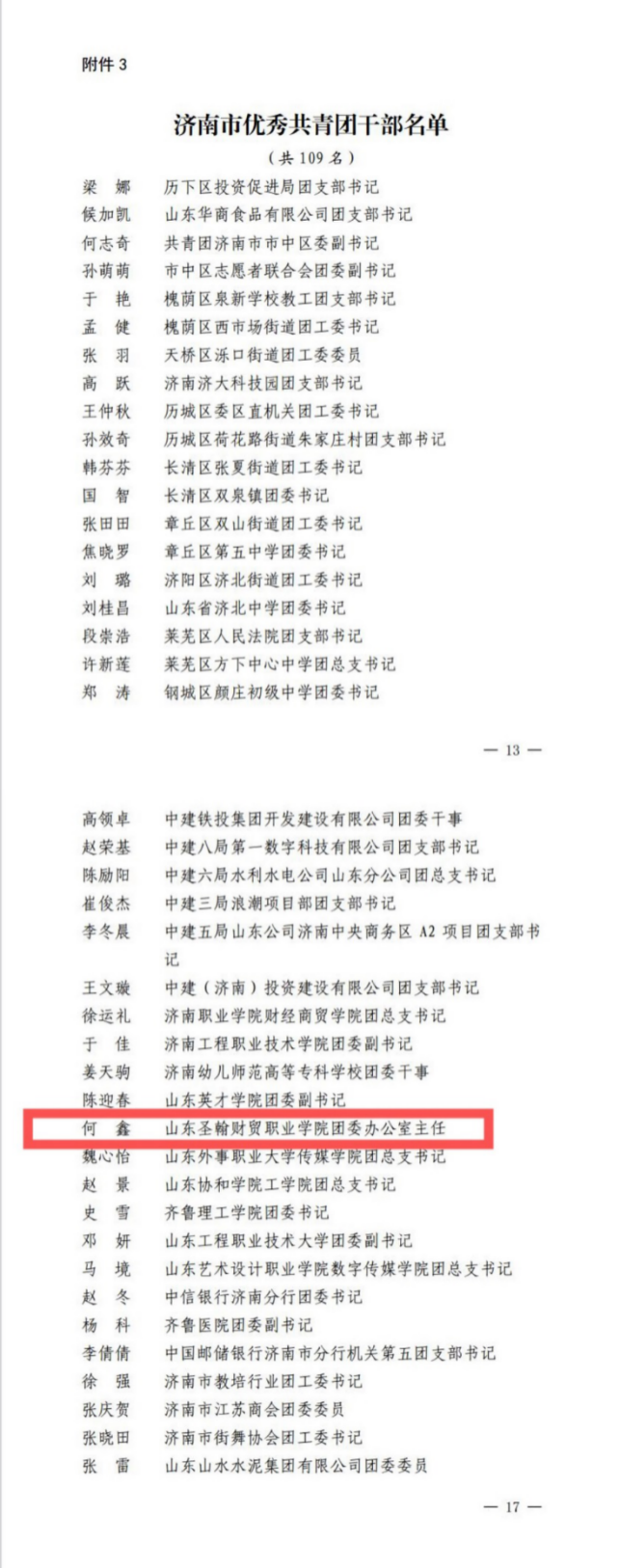 山东圣翰财贸职业学院获得荣誉具体名单: