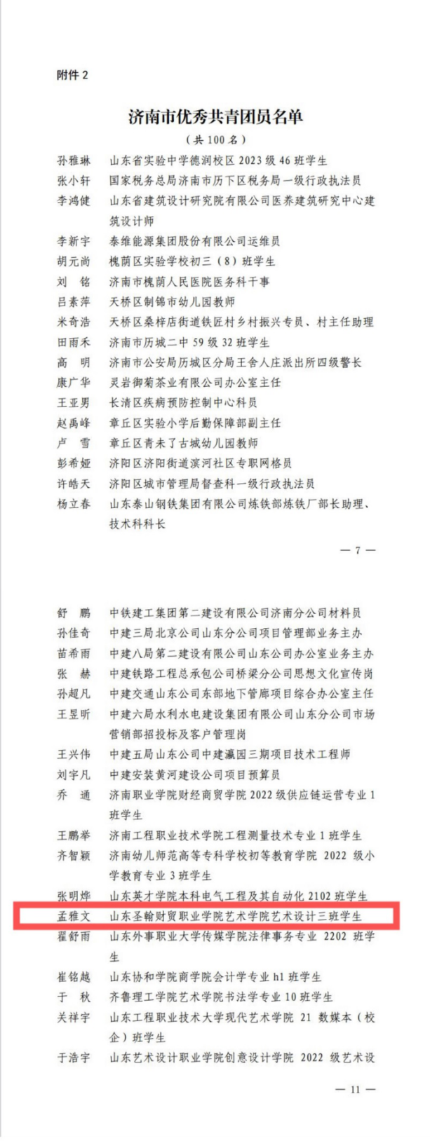 2023年度济南市优秀共青团员:孟雅文 山东圣翰财贸职业学院艺术学院艺术设计三班学生