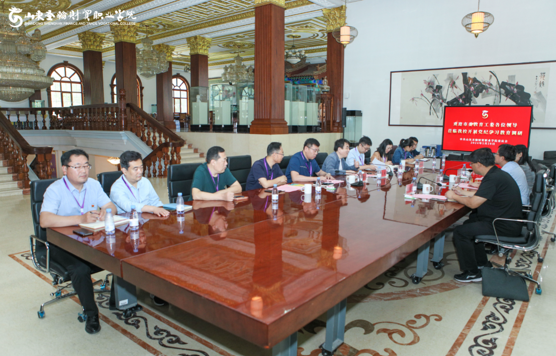 5月28日上午,济南市委教育工委党纪学习教育工作专班莅临山东圣翰财贸职业学院,调研学校党纪学习教育开展情况。学校党委书记高磊、党委副书记姜峤、省委教育工委派驻学校党建工作指导员孟宪喆、韩丽达,以及学校党委委员、各党总支书记、相关部门负责同志参加座谈会。座谈会由姜峤主持。