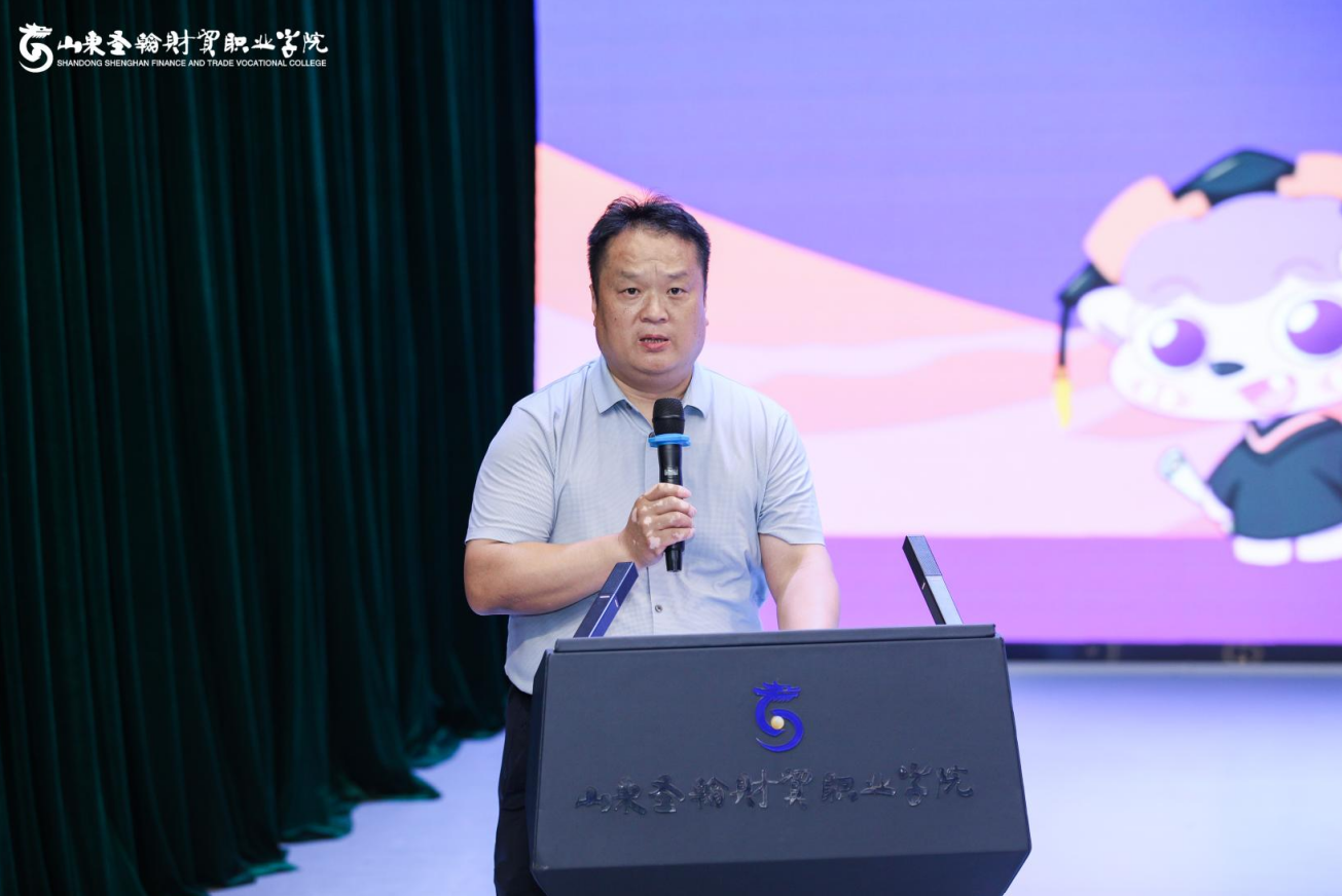 王峰代表长清区人社局发表讲话。他指出,山东圣翰财贸职业学院举办的此次校企合作大会是“校地企”各方多专业、多层次、多方面深度合作的基础一环。“校企地”三方建立战略合作,有利于加快推动校地合作、产教融合,促进学校、企业、政府在合作中实现共赢的发展目标。希望各方突出重点,做好平台、强化联动,做好衔接、抓好落实,点面开花。