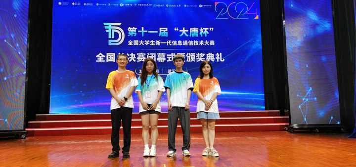 2024年7月10日-14日,第十一届“大唐杯”全国大学生新一代信息通信技术大赛全国总决赛在武汉举行,学院2名同学组成参赛队伍参赛,在同学们的精心准备和学院老师们的悉心指导下,勇创佳绩,其中学生团队荣获全国总决赛三等奖,教师团队荣获全国总决赛二等奖、三等奖各一项。本次大赛共有来自全国本、高职650余所高校参赛。