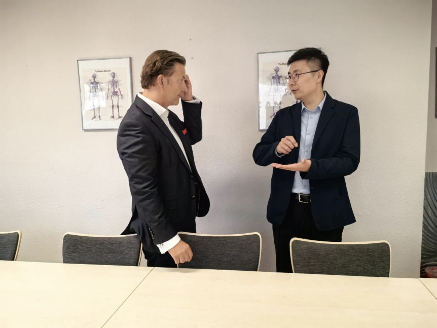 会上,阎磊与姜峤分别介绍了山东圣翰国际医院的发展蓝图与山东圣翰财贸职业学院的办学特色,并详细讨论了合作办学及医疗合作的美好愿景。双方围绕职业教育合作、德国企业用人需求、双元制教育模式及学生留学、实习、就业等问题进行探讨交流,双方表示未来有着很大的合作空间,此次交流为双方创造了良好的国际化氛围。
