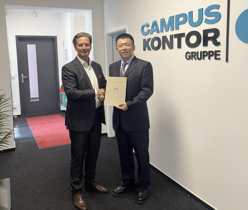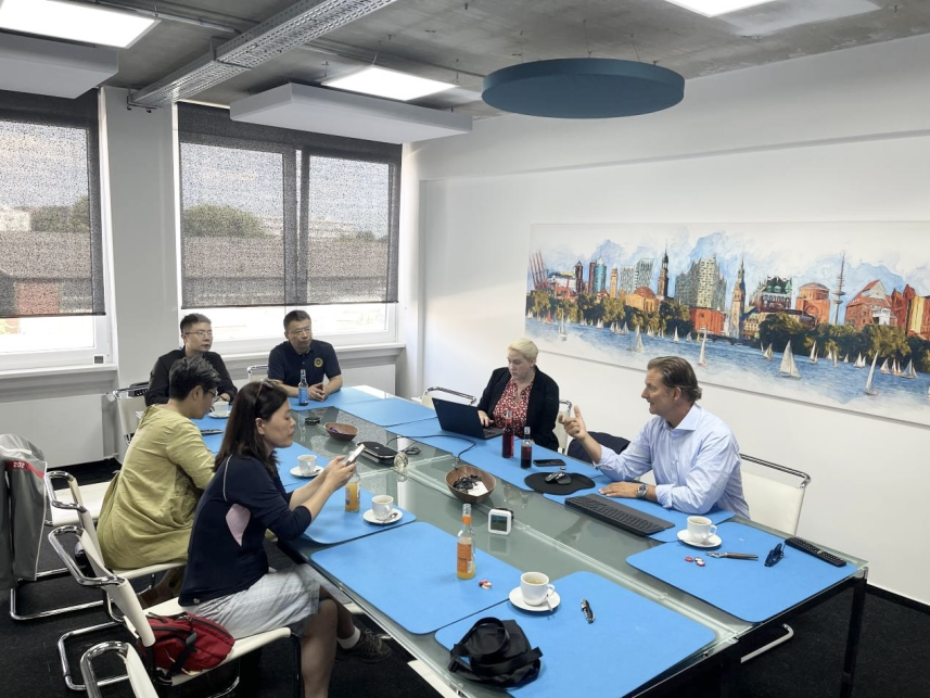 8月8日,代表团一行抵达德国汉堡,在汉堡CKG 集团总经理Niebuhr Normen先生的陪同下,深入了解CKG 集团的发展历程、业务板块,参观了汉堡校区,亲身体验了德国教育的严谨与创新。随后,双方就中德合作办学模式展开了深入而细致的交流,逐项梳理了合作的具体内容,从学制、课程设置、师资交流到学生互访,每一个细节都凝聚着双方对高质量教育合作的共同追求。此次交流不仅加深了双方的了解与友谊,更为未来中德教育合作绘制了宏伟蓝图。