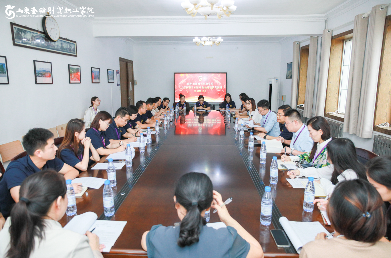 9月13日下午,山东圣翰财贸职业学院在行政楼二楼会议室组织开展了以“弘扬教育家精神,加快建设教育强国”为主题的学习研讨会。学校党委副书记、常务副校长姜峤出席活动,学校党委委员、教务处处长汪娟海,党委委员、人力资源部部长胡伟,党委委员、文化与宣传处处长张小宾,纪委委员、党委办公室主任崔光耀与20余名教师代表共同参加了此次研讨会,大会由崔光耀主持。