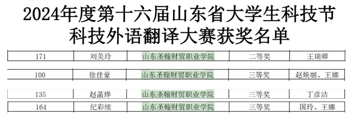 在刚刚落幕的第十六届山东省大学生科技节之“RWS杯”科技翻译大赛中,山东圣翰财贸职业学院学生凭借扎实的专业技能和出色的翻译能力,取得了优异成绩。
