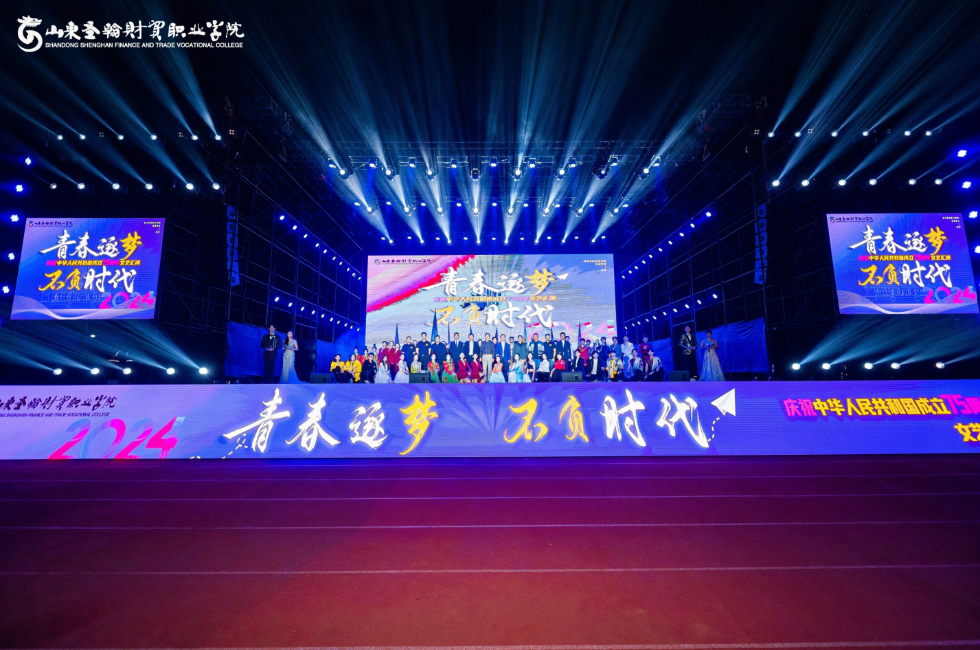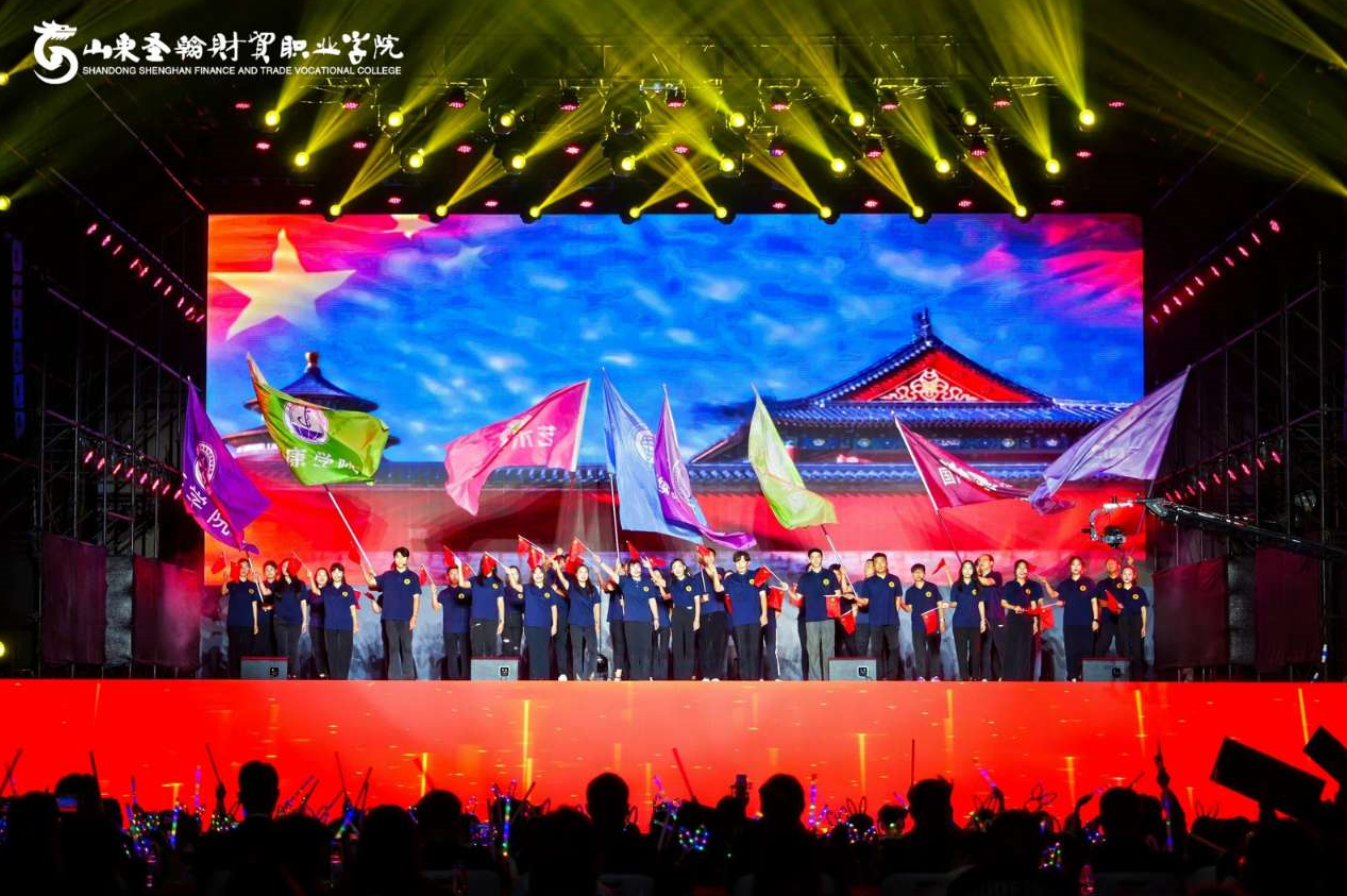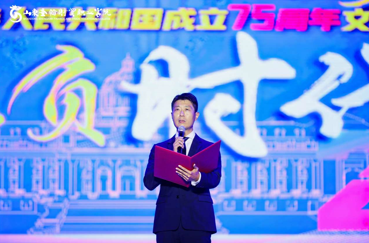 喜迎华诞,礼赞祖国。9月26日晚,山东圣翰财贸职业学院庆祝中华人民共和国成立75周年文艺汇演在主体育场举行。晚会上精彩节目轮番上演,为观众带来一场主题鲜明、内涵丰富的艺术盛宴。长清大学城管委会副主任陈晓勇、山东长城实业集团总公司董事长刘吉纯、原济南市槐荫区政协副主席姜甦,山东长城实业集团总公司派驻学校总督学姚东方,山东长城实业集团总公司总经理、山东圣翰财贸职业学院校长刘广耀等驻地领导、集团领导、学校领导出席晚会。