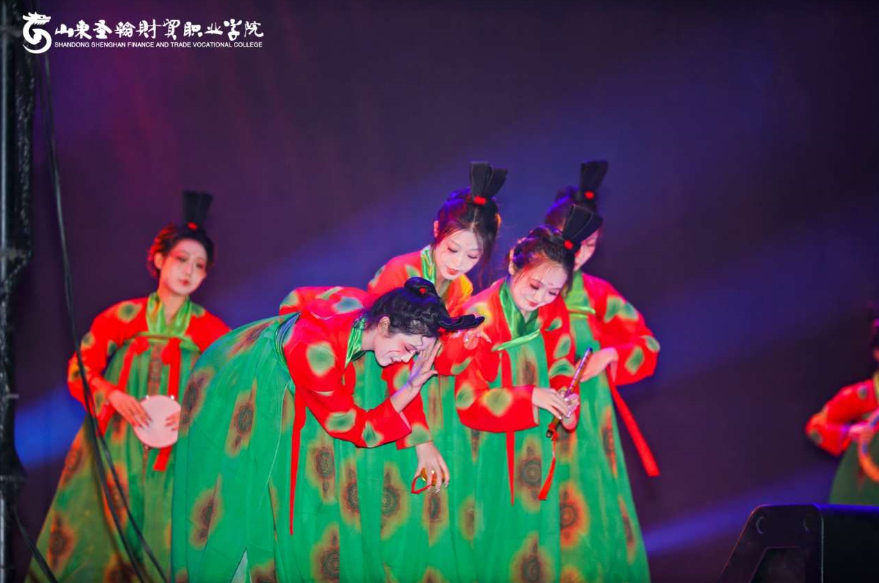 群舞《唐宫夜宴》舞者们随着音乐的起伏时而轻歌曼舞,时而欢快跳跃,仿佛在诉说着古老而美丽的故事。
