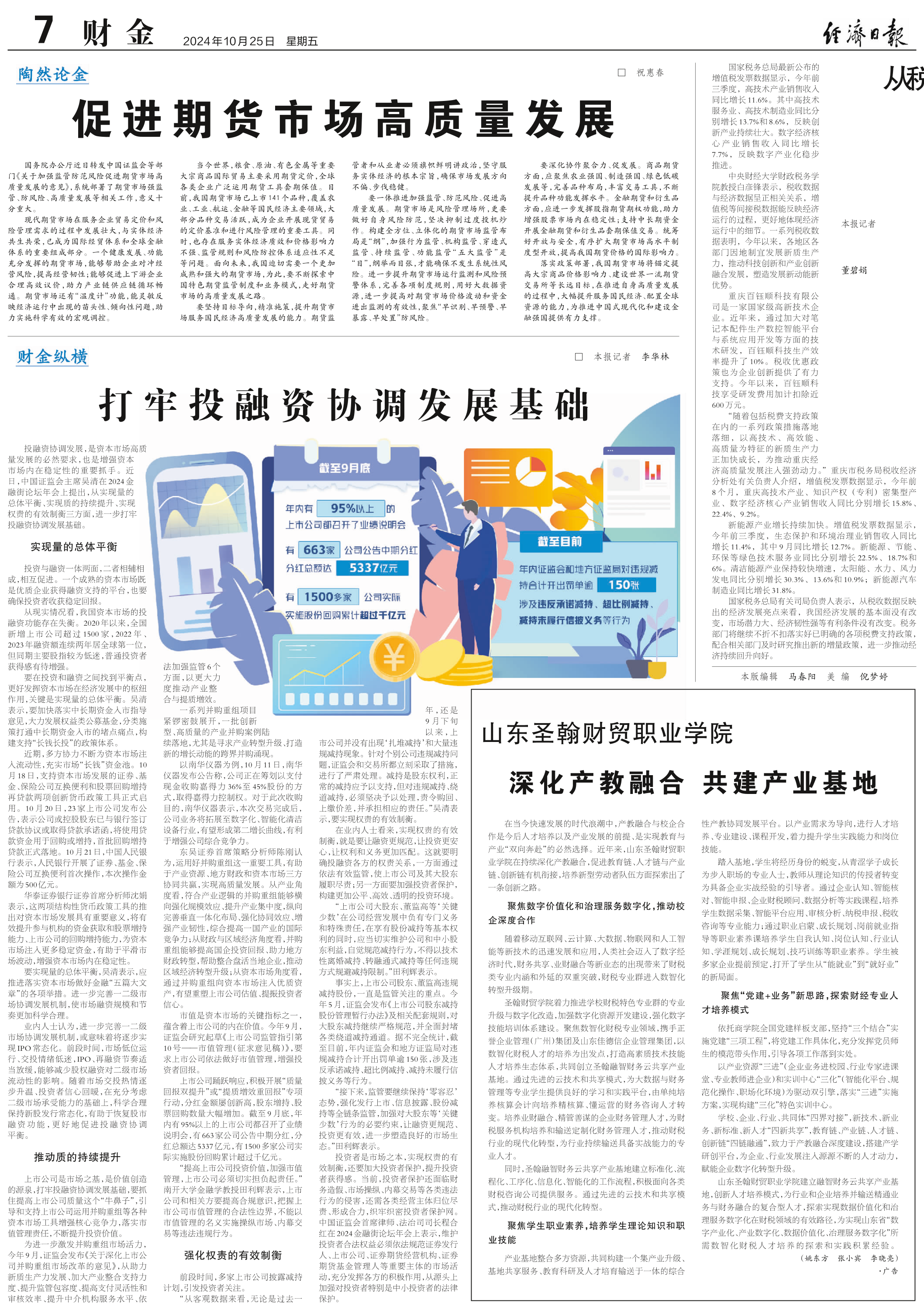 山东圣翰财贸职业学院建立融智财务云共享产业基地,创新人才培养模式,为行业和企业培养并输送精通业务与财务融合的复合型人才,探索实现数据价值化和治理服务数字化在财税领域的有效路径,为实现山东省“数字产业化、产业数字化、数据价值化、治理服务数字化”所需数智化财税人才培养的探索和实践积累经验。(姚东方 张小宾 李晓亮)